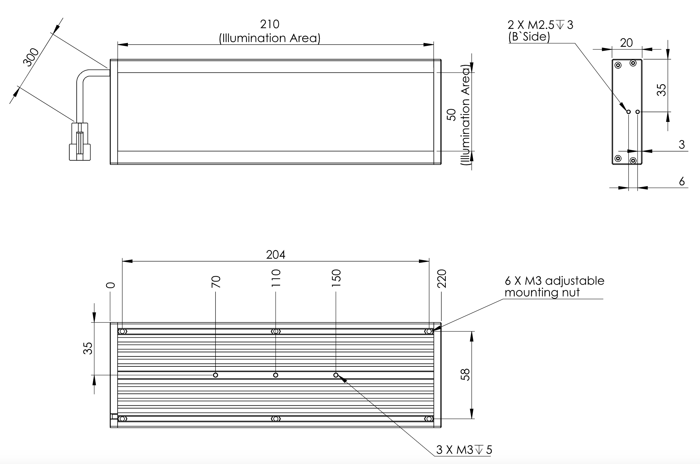Die Falcon F2DL-Si210x50-B ist eine LED-Linienleuchte mit blauen LEDs (470 nm). Diese Leuchte bietet eine leistungsstarke und gleichmäßige Beleuchtung für industrielle Anwendungen und ist ideal für präzise Inspektionen.