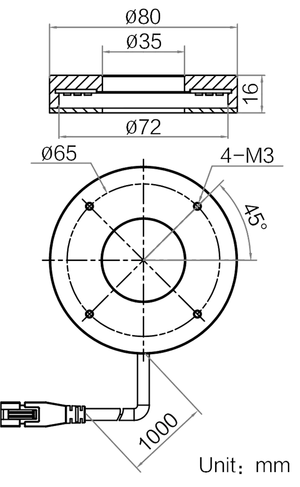 Mechanische Spezifikationen des MV-LRDS-H-80-90-R2: Abmessungen: Φ80 mm × 16 mm | Außenmaße: Φ80 mm | Bohrungsdurchmesser: Φ35 mm | Abstrahlflächenabmessungen: Φ72 mm | LED-Reihen: 3 | Gewicht: 115 g. Diffusionsplatte (PMMA) inklusive für gleichmäßigere Lichtverteilung. Die 3-reihige LED-Anordnung sorgt für besonders hohe und gleichmäßige Leuchtdichte über das gesamte Abstrahlfeld.