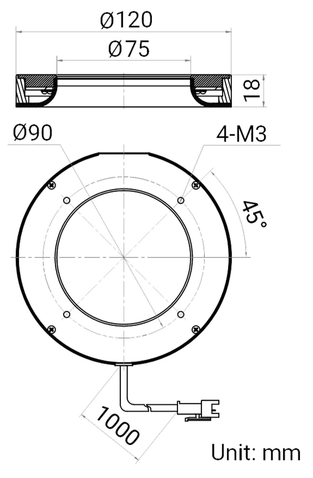 Abmessungen Φ120 mm × 18 mm