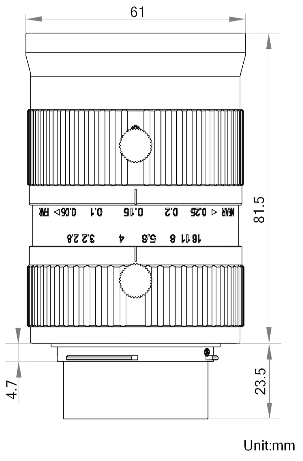 - Provides image size Φ43.2 mm for large format area scan and 8k 5 μm line scan cameras.