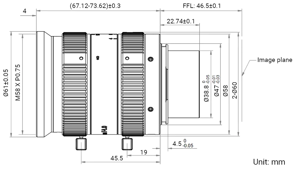 - Adopts high-precision lens for 8k 5 μm line scan cameras and full-frame area scan cameras.